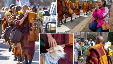 Buddhist monks — and their pup — persist in peace walk across US despite injuries
